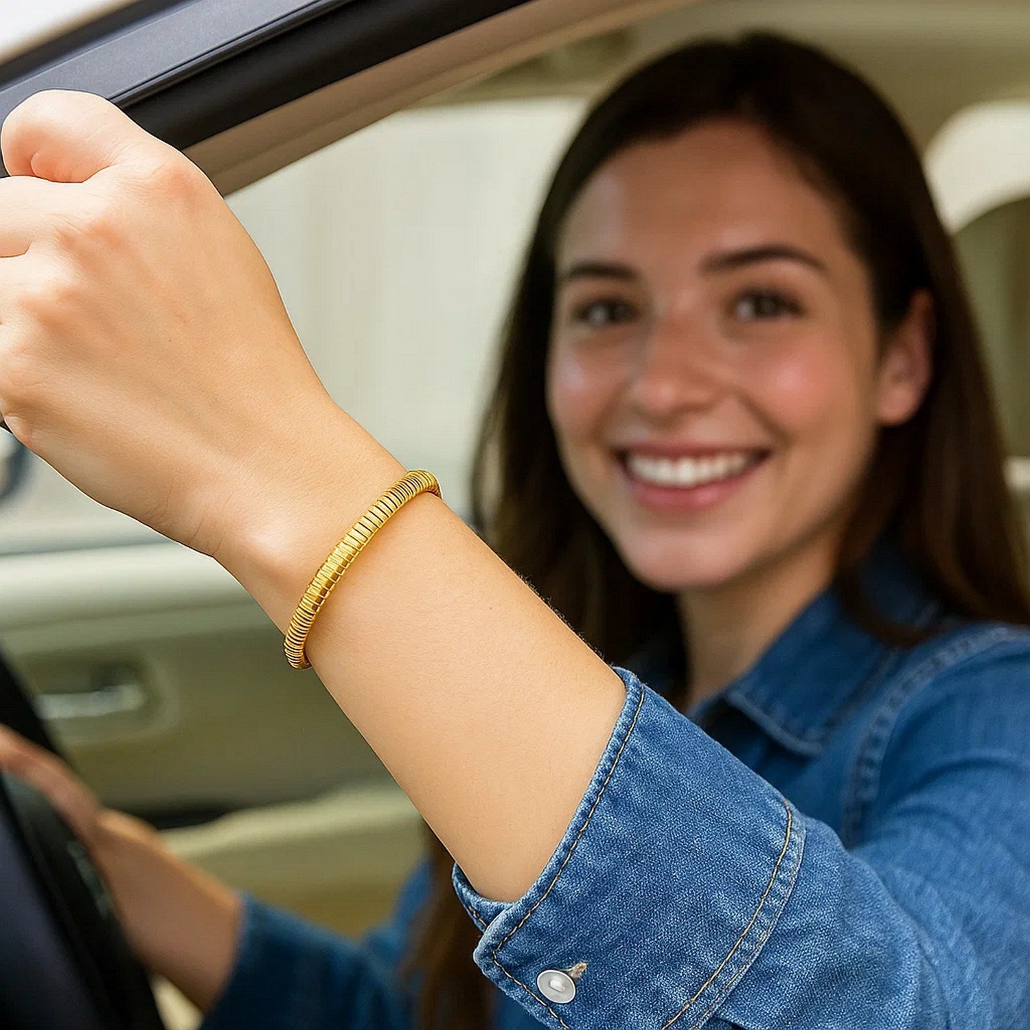 This 14K yellow gold Tubogas bracelet features a sleek, flexible coil design with a 5.00 mm width and a classic 7 1/4 inches in length, offering a perfect balance of style and comfort. The polished finish enhances its sculptural appeal, while the signature Tubogas construction gives it a smooth, contoured fit around the wrist. Secured with a durable Box clasp, this bracelet is ideal for everyday sophistication or stacking with other gold pieces for a bold, layered look.