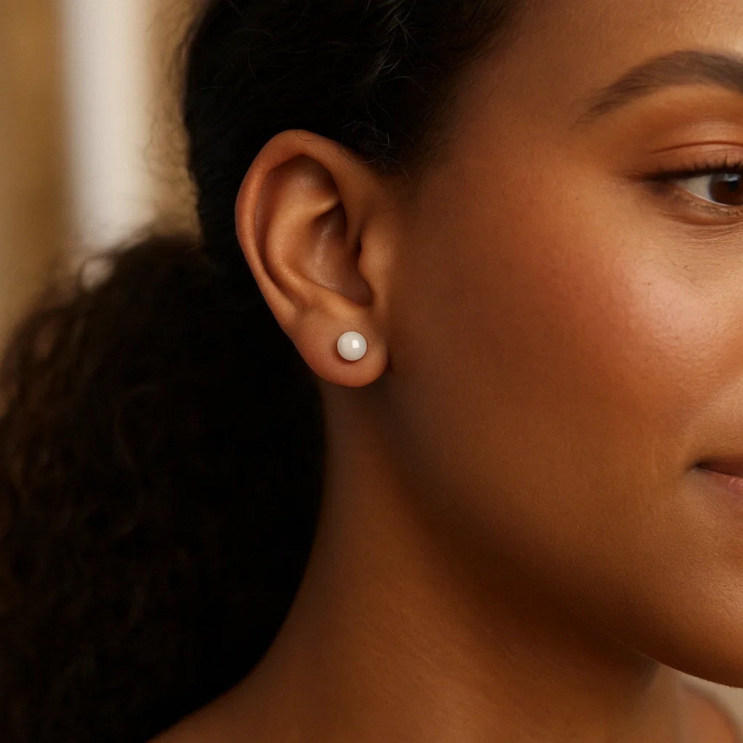 Elegant white freshwater cultured pearl stud earrings set in 14K white gold measuring 7.00 mm. Featuring luminous round pearls with a smooth, natural sheen, these timeless earrings embody classic sophistication, perfect for everyday elegance or formal occasions.